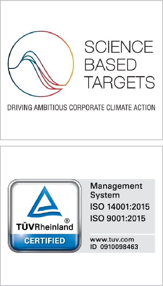 また、温室効果ガス削減に向けた中小企業版SBT認定(SMEs)認定を取得し、パリ協定が求める気温上昇抑制目標に基づいた温室効果ガス排出抑制活動に取り組んでいます。