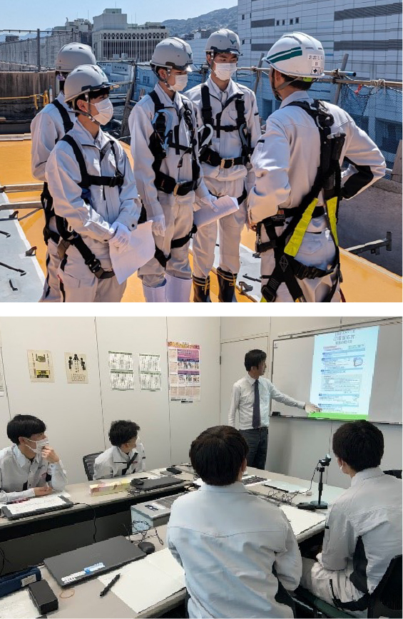 技術職の場合、施工管理についてのノウハウや社会人としてのマナーを学ぶ新入社員研修を実施しています。基礎的なビジネスマナーはもちろん、建設業界や施工管理職について詳しくない方でも安心して成長できる研修となっています。新入社員研修後においても入社から3年間フォローアップ研修を随時実施しており、仕事やキャリアにおいて悩みや不安があっても先輩社員に相談できる環境があります。