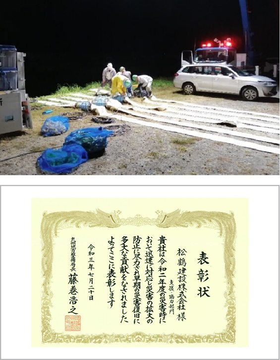 松鶴建設では、 「地域の守り手」として、防災および災害復旧活動に取り組んでいます。建設業界の一員として、災害から地域を守り、迅速な復旧を支援することで安心・安全な地域づくりに貢献しています。
